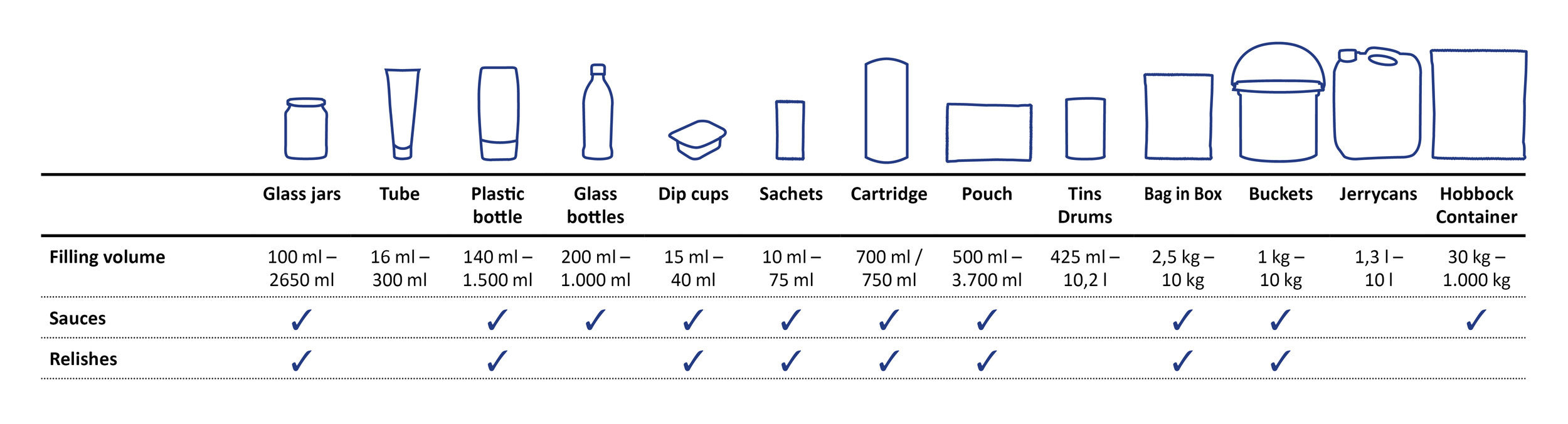 Sauces not only go well with grilled meat, fish and vegetables, but are also excellent for dipping, seasoning and marinating. Our diverse variety of sauces offers the right thing for every taste! In addition to classic varieties such as curry, Hamburger, French fries, BBQ, garlic, soya or cocktail sauce, we also produce specialities such as typical Spanish, African and Asian sauces.